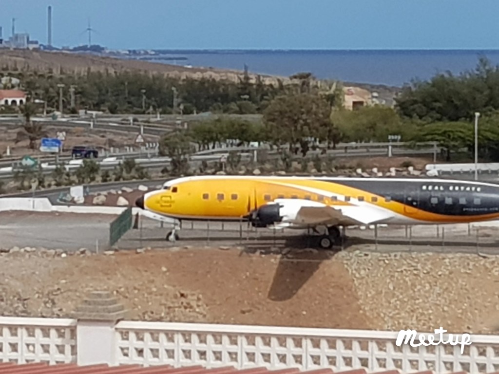 Ein Verweilen auf der ruhigen Promenade lohnt sich, allerdings wollen wir ja noch weiter. Da müssen wir wieder auf die Landstraße. Plötzlich steht ein großes Flugzeug am Wegesrand. Daran radeln wir aber vorbei und fahren Richtung Meer nach Castillo de Romeral wo wir einkehren möchten.