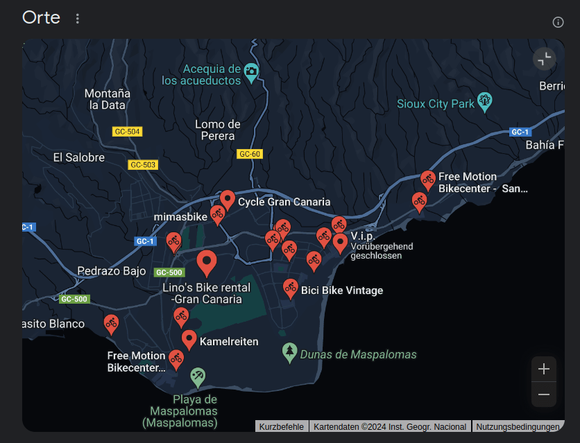 Weitere Fahrradverleihstationen in Playa del Ingles, Maspalomas und Umgebung findest du auf dieser interaktiven Karte. Die Seite ein wenig herunter scrollen und da ist sie (anklicken Bikecenter auswählen und wieder anklicken):